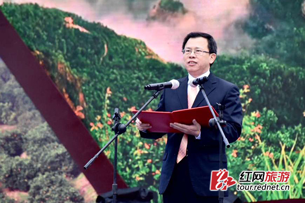 “近年来,新宁县积极实施‘旅游立县、生态优先、产业互融、民生为本、发展战略,致力打造国家全域旅游示范区。”中共新宁县委书记秦立军在仪式上介绍新宁旅游发展情况。